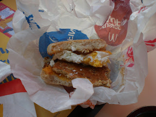 Bu sabah uzun süredir merak ettiğim, ama her kahvaltıda görüntüsünün kötülüğünden vazgeçtiğim Mc Donald’s kahvaltılarını tatma fırsatım oldu. Egg Muffin, yumurta üstünde füme tavuktan oluşuyor; tadı tavuk köfte ve yumurtalı Sausage Egg Muffin‘den daha iyi olsa da olmamış. Kahvaltılık değil, aslında herhangi bir öğünde de yiyeceğimi sanmıyorum. Hash Brown dedikleri patatesten yapılma birşey vardı menüde. İçindeki beyaz parçacıklar ve tadı lezzetsiz bir balığı andırıyor. Kahve ise idare eder -sözümona Premium Cafe‘ymiş.